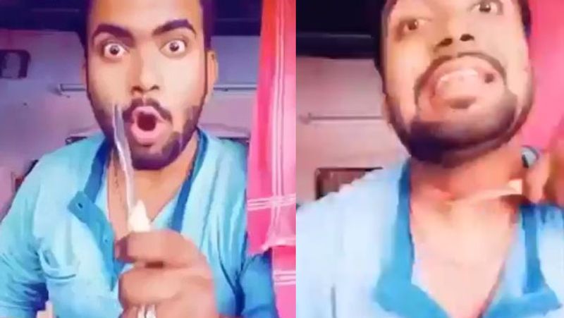 டிக் டாக் மியூசிக் செயலியில் பாடலுக்கு ஏற்ப நடித்தபோது எதிர்பாராத விதமாக வாலிபர் கழுத்தை அறுத்துக்கொள்கிறார். தற்போது இந்த வீடியோ சமூக வலைதளங்களில் வைரலாகி வருகிறது.