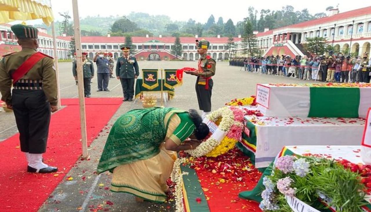 இராணுவ ஹெலிகாப்டர் விபத்தில் முப்படை தலைமை தளபதி ,அவரது மனைவி உள்ளிட்ட 13 பேர் உயிரிழந்த சம்பவம் தேசத்தையே சோகத்தில் ஆழ்ந்தியுள்ளது. இன்று வெலிங்டன் ராணுவ மையத்தில் ஜெனரல் பிபின் ராவத் உள்ளிட்ட 13 பேரின் உடல்களுக்கு இறுதி மரியாதை செலுத்தப்பட்டது. இதில் முதல்வர் மு.க.ஸ்டாலின், தெலுங்கானா-புதுவை ஆளுநர் தமிழிசை சவுந்தரராஜன், தமிழக அமைச்சர்கள் பங்கேற்றனர். ராணுவ அதிகாரிகளும் ஜெனரல் பிபின் ராவத் உள்ளிட்டோர் உடலுக்கு இறுதி மரியாதை செலுத்தினர்.