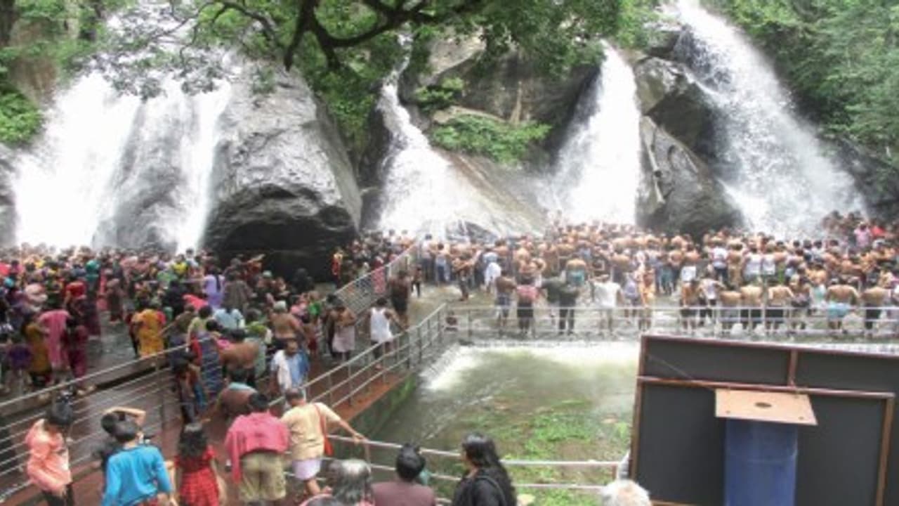 அனைத்து அருவிகளிலும் குளிக்கத் தடை விதிக்கப்பட்டதால், சுற்றுலாப் பயணிகள் அருவிக் கரையை மட்டும் பார்த்துவிட்டுச் சென்றனர்.