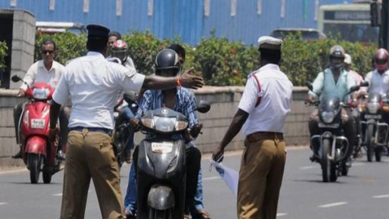 இருசக்கர வாகனத்தில் ஹெல்மெட் அணியாமல் வந்தவர்களிடம் ரூ.100 வாங்கி கொண்டு பால் லாரியில் தலைகவசம் அணியவில்லை என ரசீது அளித்த டிராஃபிக் போலீஸ் அனைவரையும் திரும்பி பார்க்க வைத்துள்ளார்.