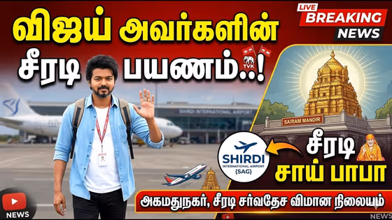 தமிழக வெற்றிக் கழகத்தின் தலைவர் விஜய் (TVK Chief Vijay) அவர்கள் இன்று மகாராஷ்டிர மாநிலம் அகமதுநகரில் (Ahilyanagar) உள்ள சீரடி சர்வதேச விமான நிலையத்திற்கு வந்தடைந்தார். விமான நிலையத்தில் அவருக்கு உற்சாக வரவேற்பு அளிக்கப்பட்டது. சீரடி சாய்பாபா கோயிலில் தரிசனம் மேற்கொள்வதற்காக அவர் வருகை தந்துள்ளதாகத் தெரிகிறது. இது குறித்த கூடுதல் விவரங்களை இந்த வீடியோவில் காணலாம்.