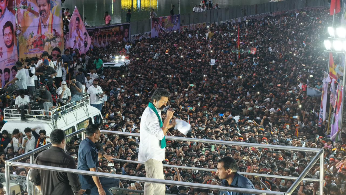 ஆனா, உங்க அப்பா பிறந்த ஊர்ல ஒரு சாலை வசதி கூட சரியா இல்லையே சார். திருவாரூர் மருத்துவக் கல்லூரிக்கே வைத்தியம் பார்க்கணும் போல இருக்கு. உங்களுடன் ஸ்டாலின் என்பதை உங்க குடும்பத்துக்கு மட்டும் தான் சொல்லிக்கணும்" என்று முதல்வர் ஸ்டாலின் குடும்பத்தை காட்டமாக விமர்சித்து தனது உரையை சுருக்கமாக முடித்தார் விஜய்.