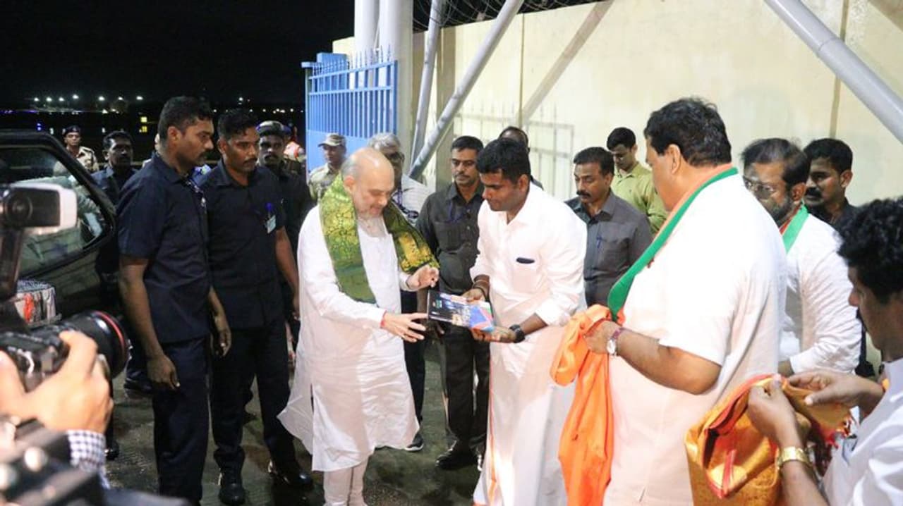 இந்தியா சிமெண்ட்ஸ் நிறுவனத்தின் 75 வது ஆண்டு விழா இன்று சென்னையில் நடக்கிறது, பாஜக சார்பிலும் பல்வேறு நிகழ்ச்சிகள் நடப்பதால் அதில் பங்கேற்க மத்திய உள்துறை அமைச்சர் அமித் ஷா நேற்று இரவு சென்னை வந்தார். அவருக்கு பாஜக மாநிலத் தலைவர் அண்ணாமலை, மத்திய அமைச்சர் எல் முருகன், நயினார் நாகேந்திரன் உள்ளிட்ட பாஜக நிர்வாகிகள் நேரில் வரவேற்றனர்.
