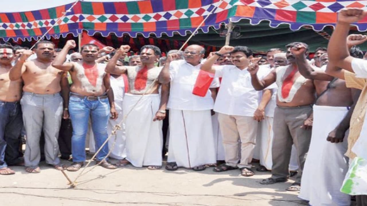 இந்தப் போராட்டத்தில் பங்கேற்றவர்கள் தங்கள் வயிறு மற்றும் நெற்றியில் நாமமிட்டு, விவசாயிகளின் கோரிக்கைகளை நிறைவேற்ற வேண்டும் என்று வலியுறுத்தி முழக்கங்களை எழுப்பினர்.