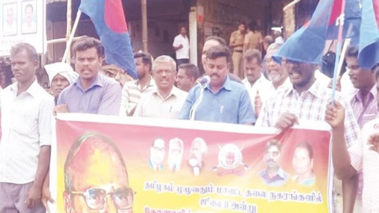 இந்த ஆர்ப்பாட்டத்தில், "கழிவுநீர் தொட்டி போன்றவற்றை நேரடியாக தூய்மை பணியாளர்கள் சுத்தம் செய்வதால் அடிக்கடி விஷவாயு தாக்கி மரணம் நிகழ்கிறது. எனவே, இதனை தடுத்திட நடவடிக்கை எடுக்க வேண்டும்.