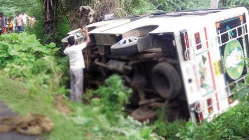 ஜெயங்கொண்டம் அருகே இலையூர் பகுதியில் சென்று கொண்டிருந்தபோது, திடீரென வேன் டிரைவரின் கட்டுப்பாட்டை இழந்து, தறிக்கெட்டு ஓடி சாலையோரத்தில் உள்ள பள்ளத்தில் திடீரென கவிழ்ந்தது. இதில் வேனில் பயணம் செய்த 25 பேர் படுகாயமடைந்தனர்.