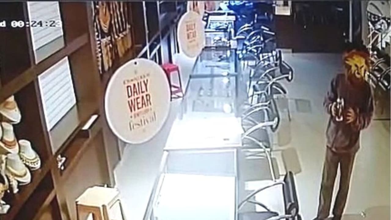 வடக்கு மண்டல ஐ.ஜி., சந்தோஷ்குமார், நேற்று நகைக் கடையை பார்வையிட்டார். அப்போது அவர் கூறியதாவது, நகைக் கடைக்குள் உள்ள கேமராவில் பதிவாகியிருந்த காட்சியில், கொள்ளையன் ஒருவன் முகமூடி அணிந்து தலையில் விக் வைத்து, கையில் ஸ்பிரேயர் வைத்துக் கொண்டு வரும் காட்சி பதிவாகியிருந்தது.