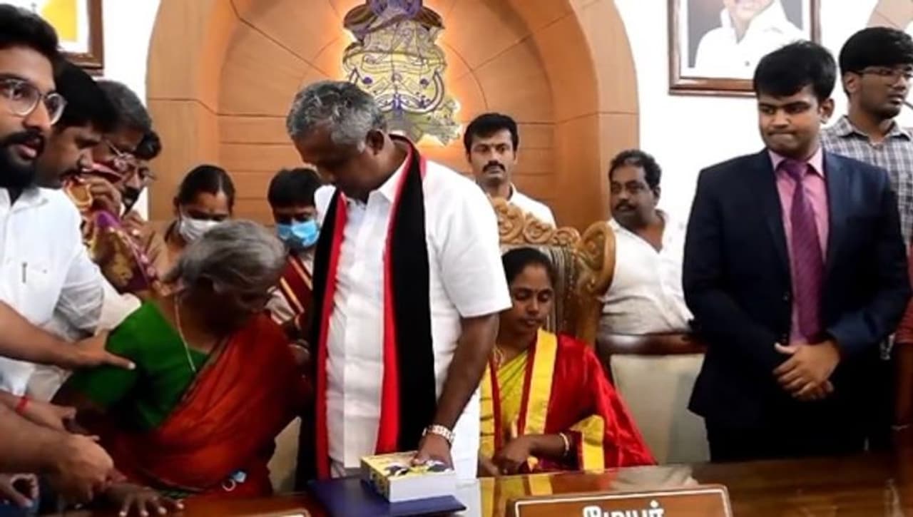 கோவையில் துணை மேயராக தேர்வுசெய்யப்பட்ட வெற்றிச்செல்வன் பதவியேற்றப்பின் தனது நாற்காலியில் தனது தாயை அமரவைத்து அழகுபார்த்த வீடியோ சமூக வலைதளங்களில் வைரலாக பரவி வருகிறது.