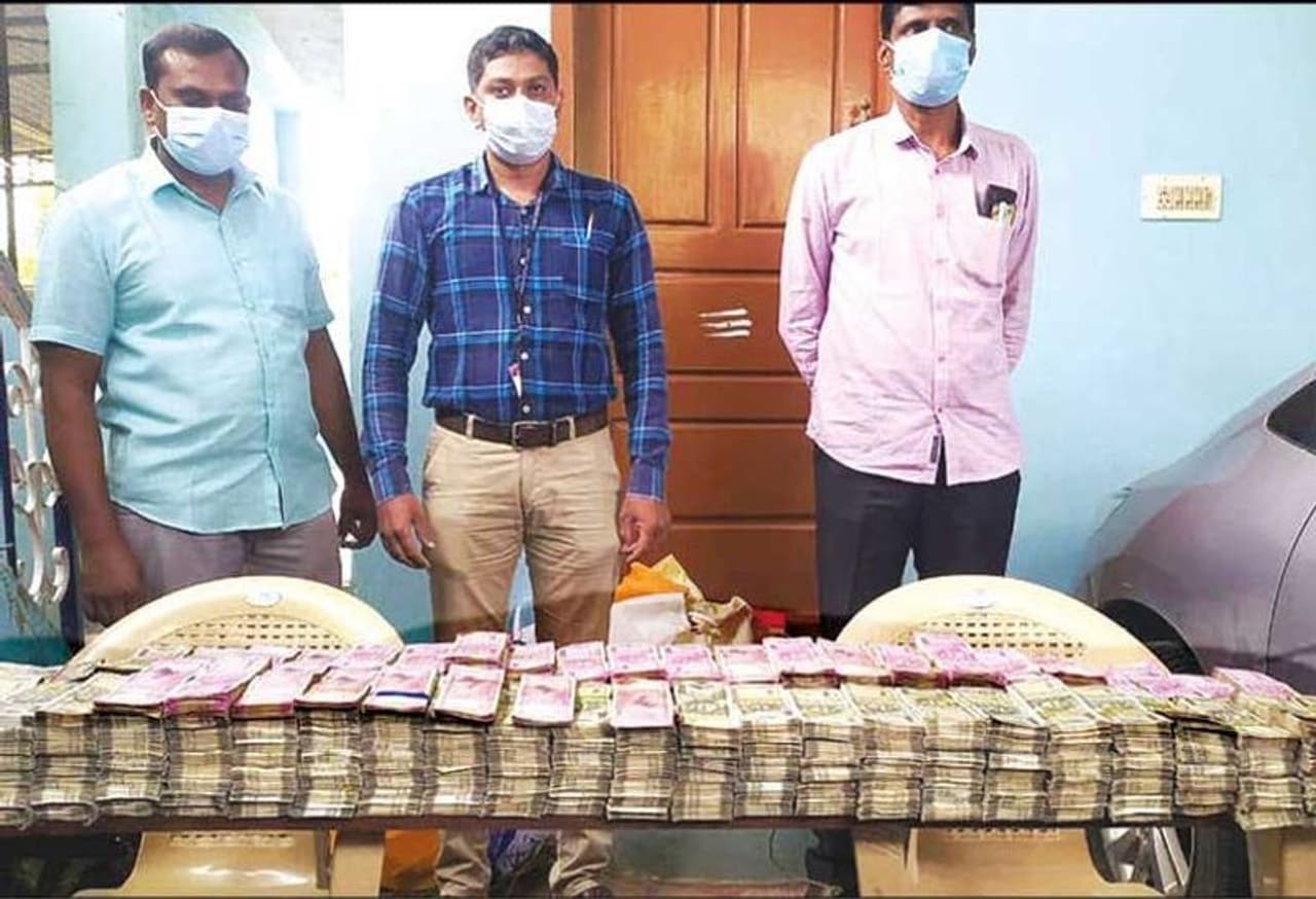 அவர் சென்ற காரில் உரிய ஆவணங்களின்றி இருந்த ரூ.5 லட்சம் ரொக்க பணத்தை பறிமுதல் செய்ததோடு, வேலூரில் அரசு பாலிடெக்னிக் கல்லூரி வளாகத்தில் உள்ள அவரது வீட்டில் இருந்து கணக்கில் வராத ரூ.15 லட்சத்து 85 ஆயிரம் ரொக்கம், ரூ.3 லட்சத்து 92 ஆயிரம் மதிப்புடைய 3 காசோலைகள், 18 ஆவணங்களையும் லஞ்ச ஒழிப்பு காவல்துறையினர் பறிமுதல் செய்தனர்.