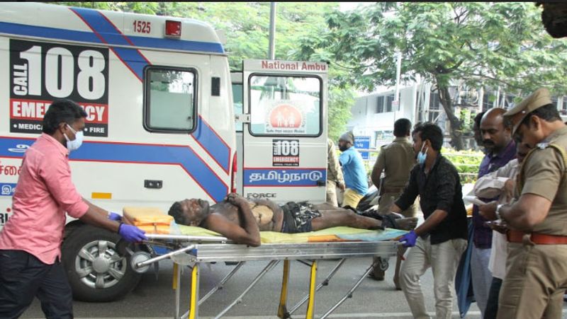 உடல் முழுவதும் தீ பரவியதில் அலறி துடித்தார். அவ்வழியாக சென்றவர்கள், இதை பார்த்ததும் அதிர்ச்சியடைந்து, தீயை அணைக்க முற்பட்டனர். இதற்கிடையில் தகவலறிந்து மயிலாப்பூர் போலீசார் சம்பவ இடத்துக்கு சென்றனர். பின்னர், 108 ஆம்புலன்சில், அழகரை ஏற்றி கீழ்ப்பாக்கம் அரசு மருத்துவமனைக்கு அனுப்பி வைத்தனர். அங்கு தீவிர சிகிச்சை அளிக்கப்படுகிறது.