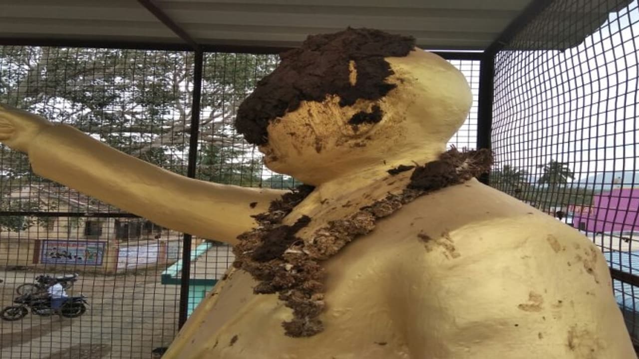 இந்த அம்பேதகர் சிலையின் மீது நேற்று நள்ளிரவு மர்ம நபர்கள் சாணி அடித்துள்ளனர்.