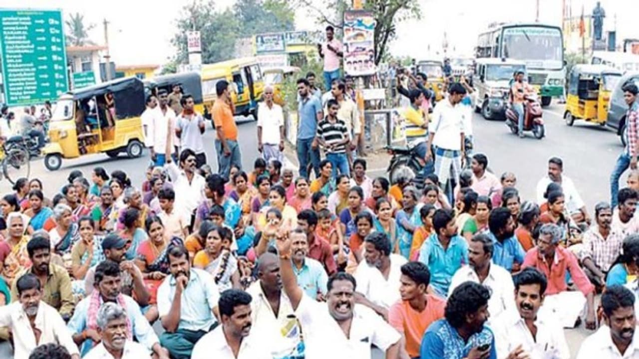 இதனிடையே மின் இணைப்பை துண்டிப்பதைக் கண்டித்தும், வீடுகளை காலி செய்ய கால அவகாசம் அளிக்கக் கோரியும் மக்கள் பாரதி சாலையில் மறியலில் ஈடுபட்டனர்.