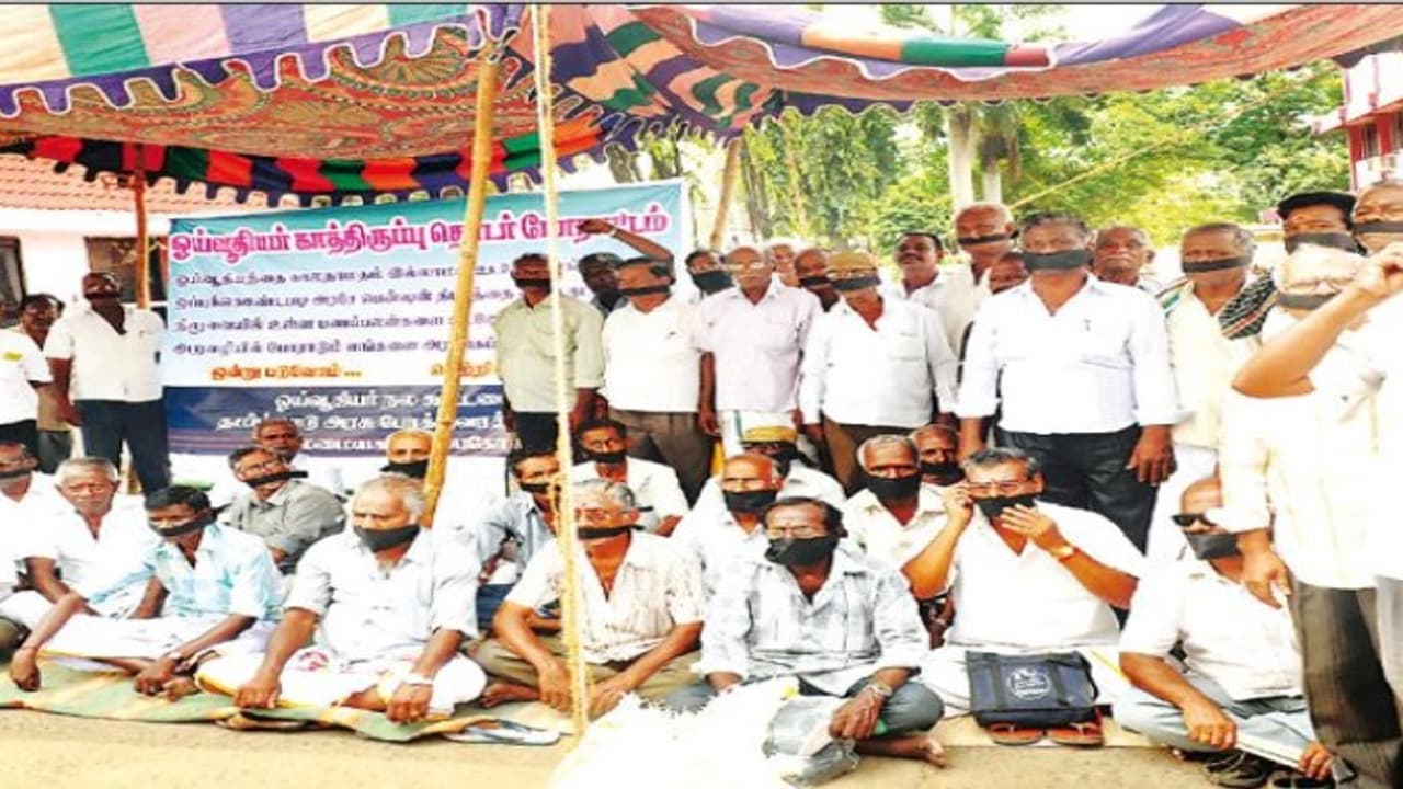நேற்று நடந்த போராட்டத்தில், வாயில் கருப்பு துணியை கட்டிக் கொண்டிருந்தனர். இந்தப் போராட்டத்திற்கு கூட்டமைப்பு நிர்வாகி முத்துக்குமாரசாமி தலைமை வகித்தார்.