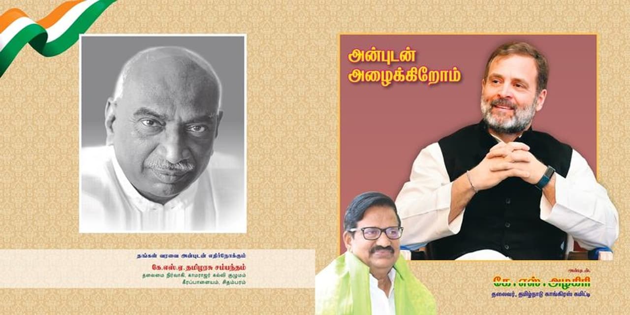 கே. எஸ். அழகிரியின் மகள் காஞ்சனா அழகிரியின் திருமணத்தை முன்னிட்டு அச்சிடப்பட்டுள்ள 4 பக்க அழைப்பிதழில், 'அன்புடன் அழைக்கிறோம்' என்ற வாசகத்துடன் 52 வயதான காங்கிரஸ் தலைவர் ராகுல் காந்தியின் படம் முதல் பக்கத்திலேயே இடம்பெற்றுள்ளது. அதற்குக் கீழே கே. எஸ். அழகிரியின் படம் சிறிய அளவில் உள்ளது.