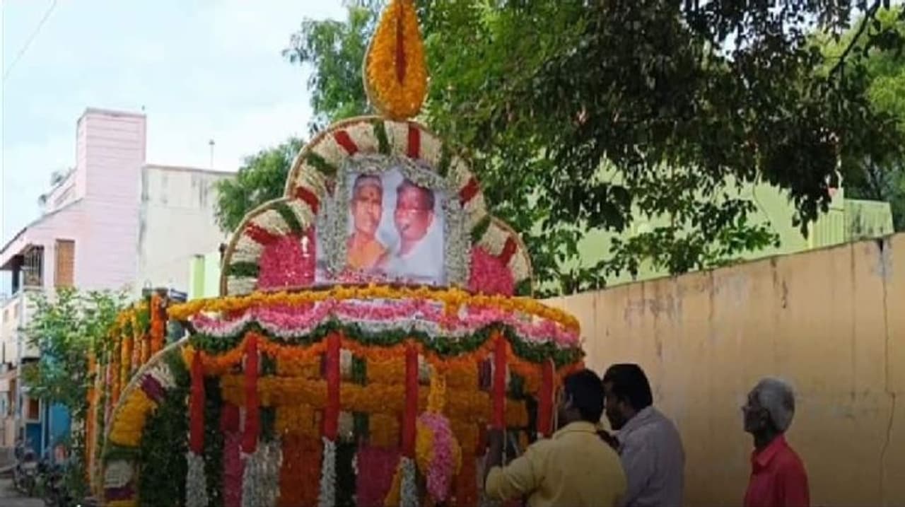 இதனை அடுத்து அஞ்சலியின் உடலும் அவரது கணவர் சேகரின் உடலுக்கு அருகில் வைக்கப்பட்டது. கணவன் உயிரிழந்த துக்கம் தாங்காமல் மனைவி உயிரிழந்த சம்பவம் அவர்களது உறவினர்களிடையே பெரும் சோகத்தை ஏற்படுத்தி உள்ளது. கணவன் மற்றும் மனைவி ஆகியோரின் உடல்கள் அலங்கரிக்கப்பட்ட ஒரே பல்லக்கில் வைத்து இறுதி ஊர்வலம் நடத்தப்பட்டது. இந்த சம்பவம் அப்பகுதி மக்களிடையே பெரும் நெகிழ்வையும் சோகத்தையும் ஏற்படுத்தியுள்ளது.