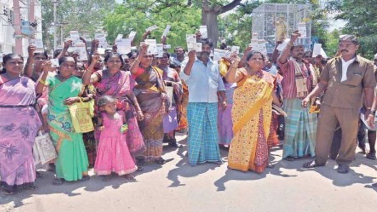 இதனால், நேற்றுக் காலை இந்த இரண்டுக் கிராமங்களைச் சேர்ந்த மக்களும் திரளாக கூடி தங்களது ஆதார் அட்டையை ஒப்படைக்கும் போராட்டத்தை கையிலெடுத்து உதவி ஆட்சியரிடம் வந்தனர்.