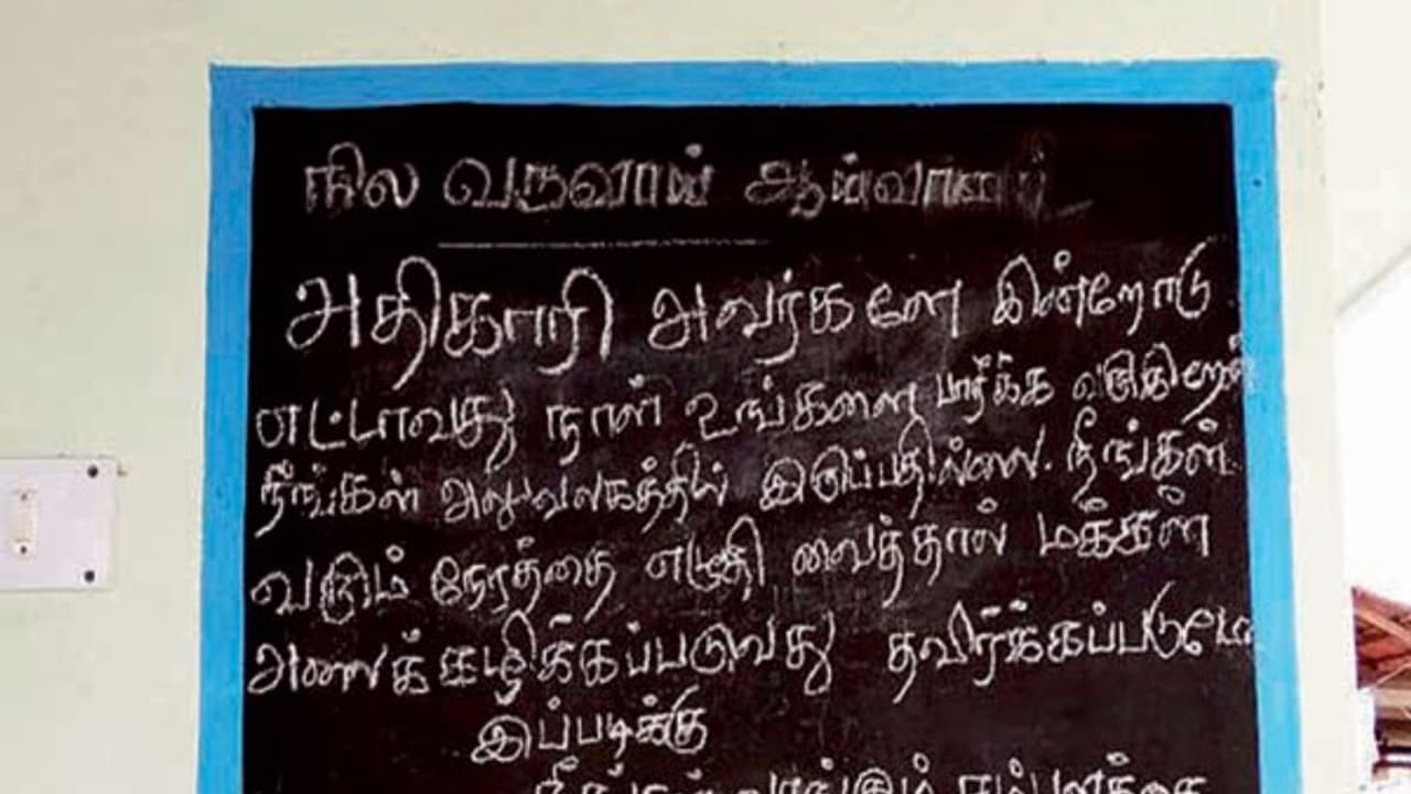 சான்றிதழுக்காக கையெழுத்து பெற தொடர்ந்து 8 நாள்களாக வந்தும் நிலவருவாய் ஆய்வாளர் இல்லாததால் அங்கிருந்த தகவல் பலகையில் குறிப்பு எழுதிய இளைஞரால் பரபரப்பு ஏற்பட்டது.