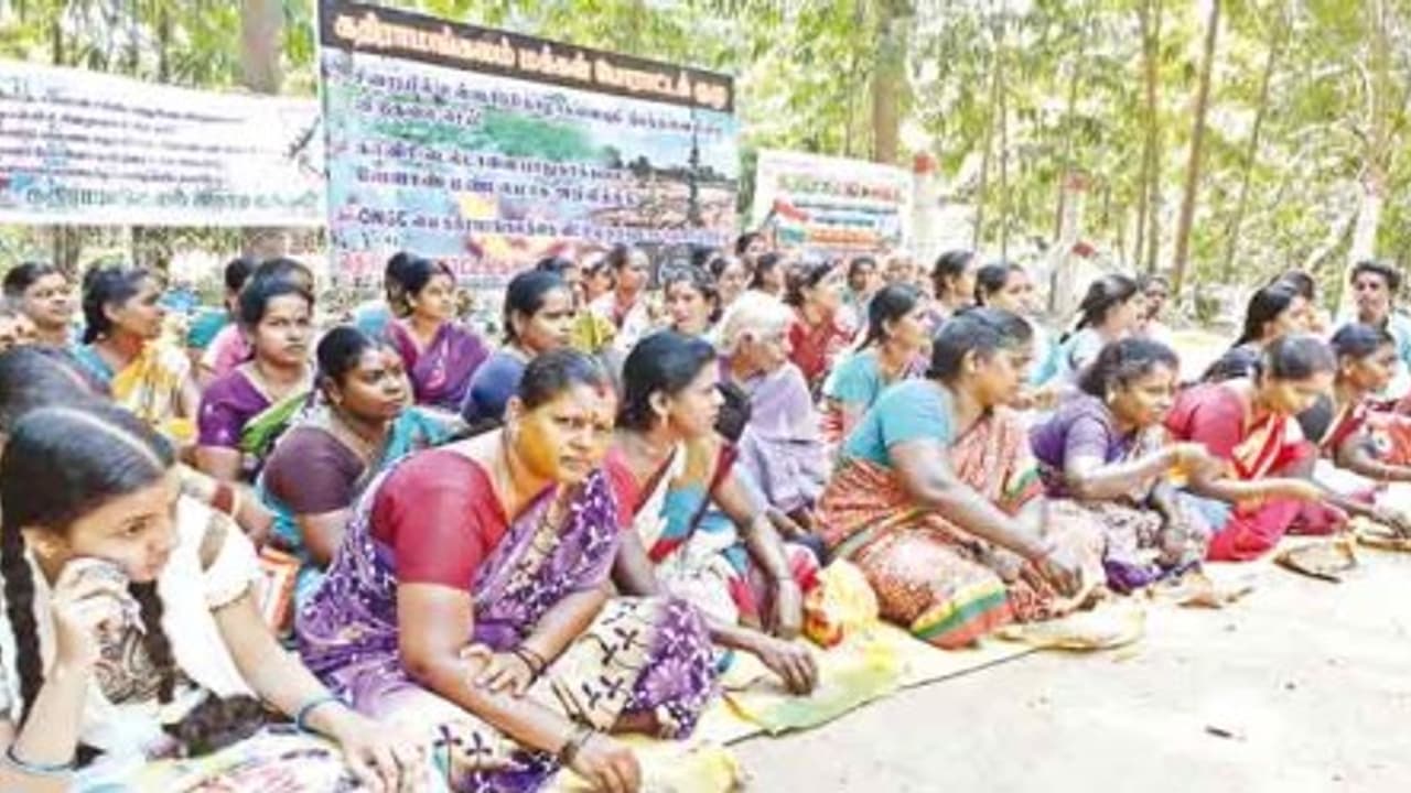 இந்நிலையில் காத்திருப்பு போராட்டத்தில் ஈடுபட்டுள்ள பெண்கள், வாழை இலையில் மண் வைத்து மண் சோறு சாப்பிடும் போராட்டத்தில் ஈடுபட்டனர். இதனால் அங்கு பரபரப்பு ஏற்பட்டது.