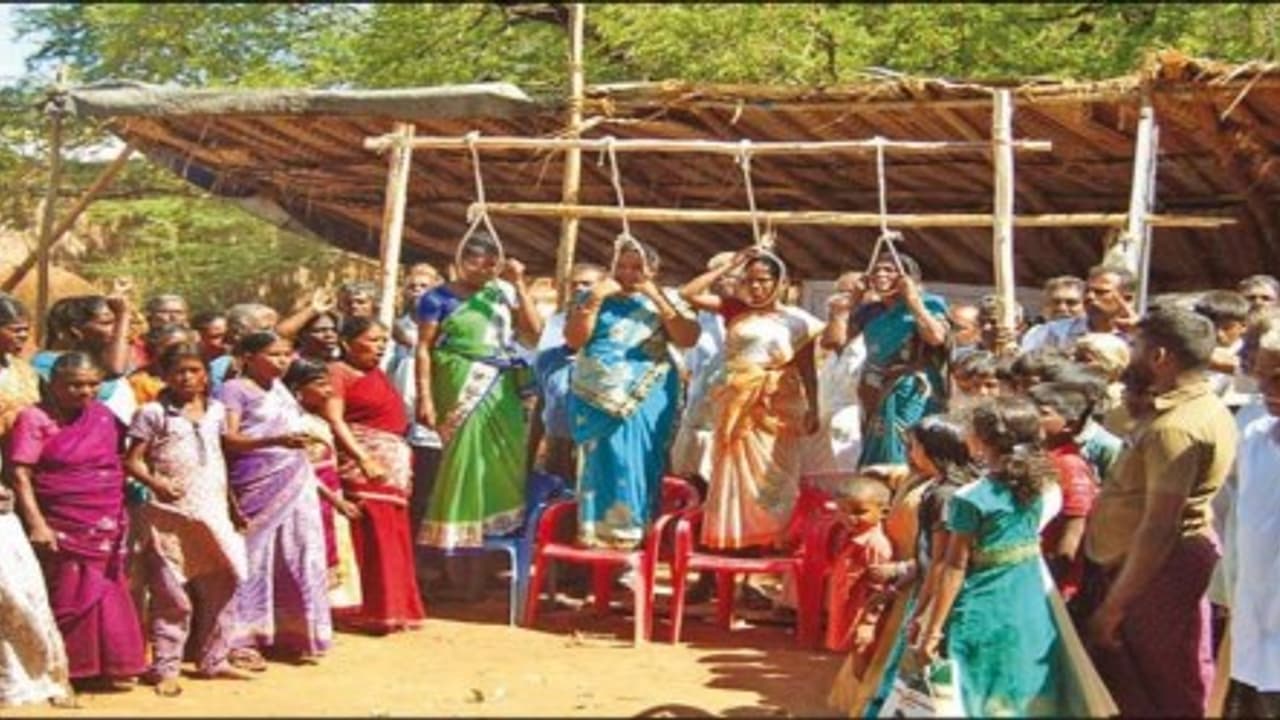 ஐந்தாவது நாளான நேற்று பெண்கள் கழுத்தில் தூக்கு கயிறு மாட்டி போராட்டத்தில் ஈடுபட்டனர்.