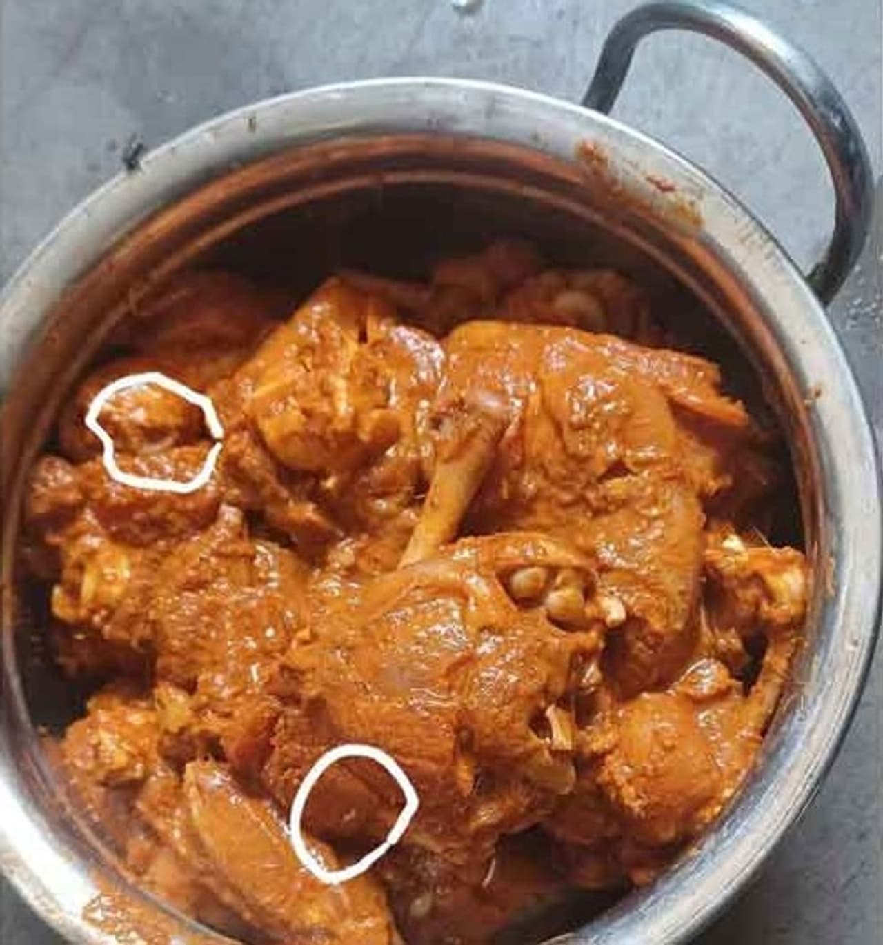 அதற்கு கடைக்காரர் இதுவரை யாரும் இப்படி ஒரு புகார் தெரிவித்தது கிடையாது. எனவே உங்கள் பணத்தை வேண்டுமானால் திருப்பி தந்துவிடுகிறேன் என்று சமாதானபடுத்தியதாக கூறப்படுகிறது. ஆனால் பாதிக்கப்பட்ட நபர், சிக்கன் கறியை வீடியோ எடுத்து சமூக வலைத்தளத்தில் பதிவிட்டுள்ளார். தற்போது இது அனைவராலும் பகிரப்பட்டு, வைரலாகி வருகிறது. மேலும் இது தொடர்பாக சம்பந்தப்பட்ட துறை அதிகாரிகள் ஆய்வு செய்து உரிய நடவடிக்கை எடுக்கவேண்டும் என்று பொதுமக்கள் கோரிக்கை விடுத்துள்ளனர்.