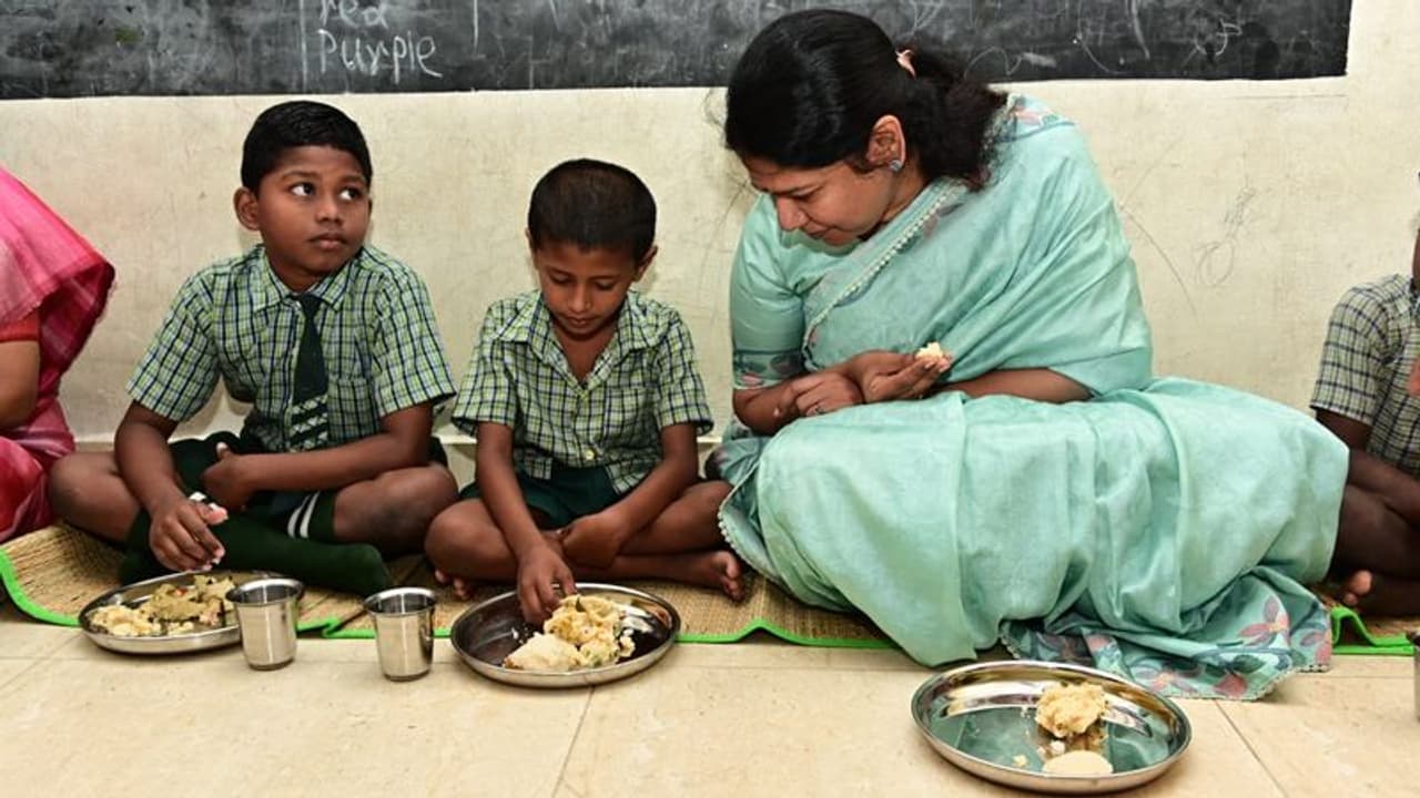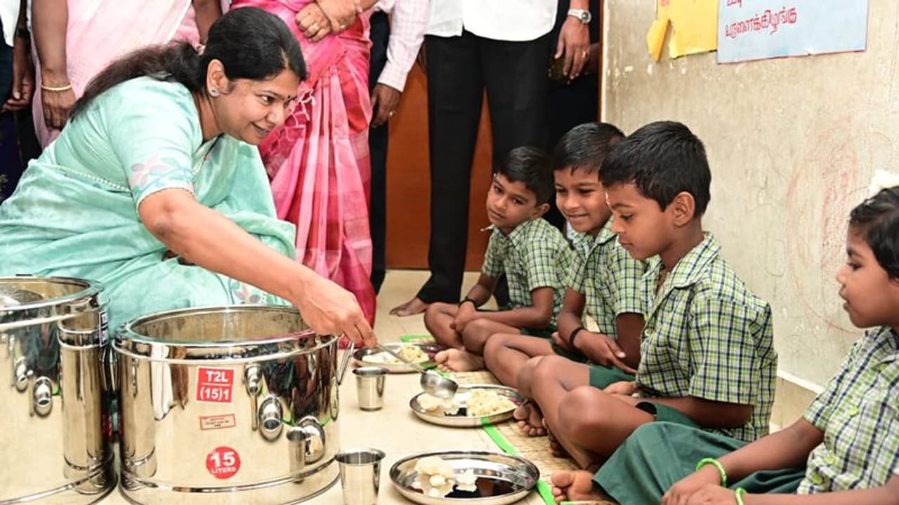 அரசுப்பள்ளிகளில் பயிலும் மாணவர்களுக்கு காலை சிற்றுண்டி திட்டத்தை தமிழக முதலமைச்சர் நேற்று தொடங்கி வைத்த நிலையில் தூத்துக்குடி நாடாளுமன்ற உறுப்பினர் கனிமொழி மாணவர்களுக்கு உணவு பரிமாறிய அவர்களுடன் உணவு சாப்பிட்ட புகைப்படம் சமூக வலைதளத்தில் வெளியாகி உள்ளது.