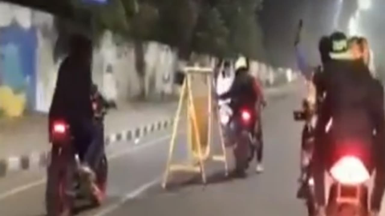 போக்குவரத்தை ஒழுங்கு படுத்துவதற்காக போலீசார் வைத்திருக்கும் தற்காலிக தடுப்புகளையே இருசக்கர வாகனத்தில் செல்லும் இளைஞர்கள், நெருப்புப் பொறி பறக்க இழுத்துச் செல்லும் அதிரவைக்கும் காட்சிகள் சமூக வலைத்தளங்களில் வைரலாக பரவி வருகின்றன.