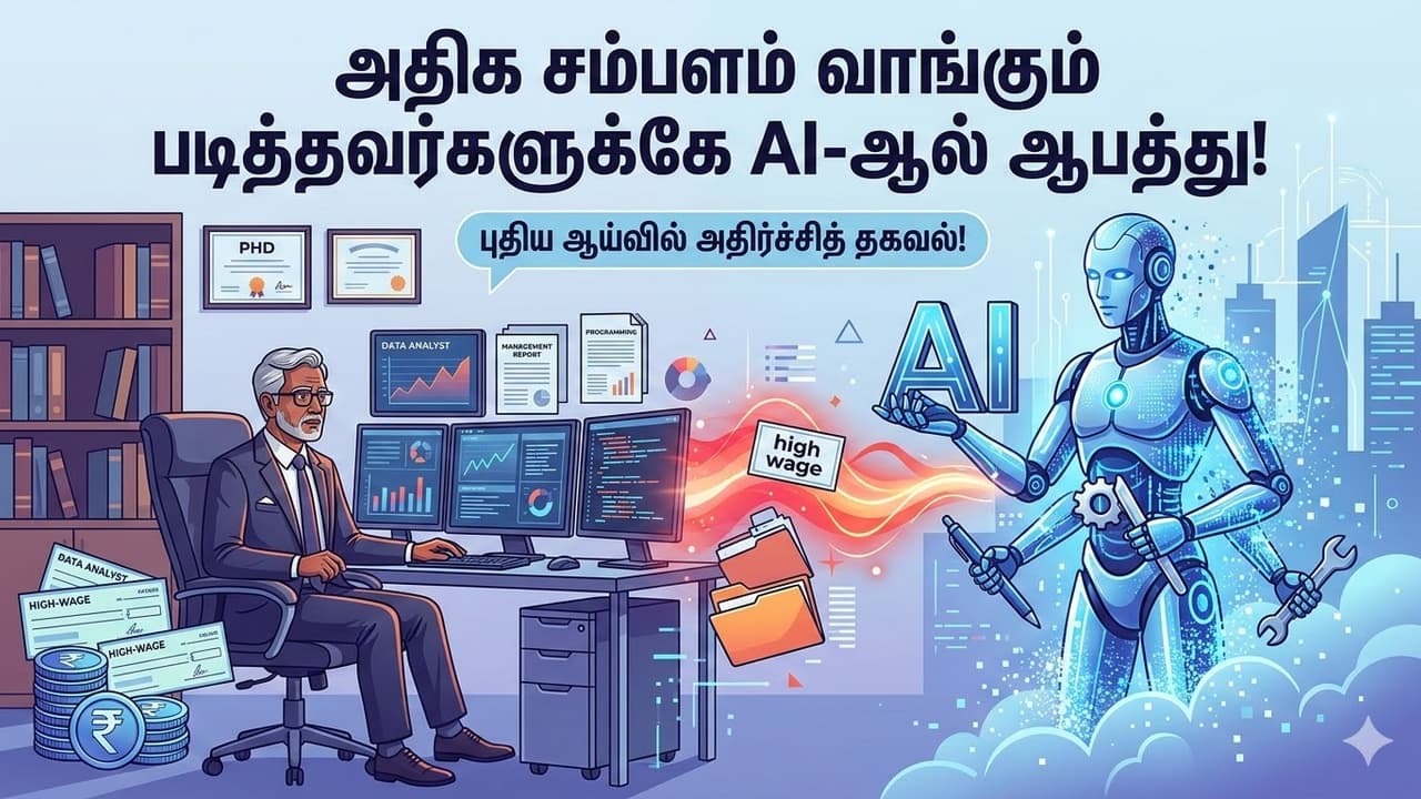 செயற்கை நுண்ணறிவு (AI) தொழில்நுட்பம் வந்ததிலிருந்து, "நமது வேலை பறிபோய்விடுமோ?" என்ற பயம் பலருக்கும் எழுந்துள்ளது. பொதுவாக, ஆட்டோமேஷன் மற்றும் புதிய தொழில்நுட்பங்கள் அறிமுகமாகும் போது, குறைந்த திறன் கொண்ட மற்றும் குறைந்த வருமானம் பெறும் வேலைகளுக்குத்தான் முதலில் ஆபத்து வரும் என்று நாம் நினைப்போம். ஆனால், தற்போது வெளியாகியுள்ள ஒரு புதிய அறிக்கை இந்த பொதுவான எண்ணத்தை முற்றிலும் மாற்றியுள்ளது.
