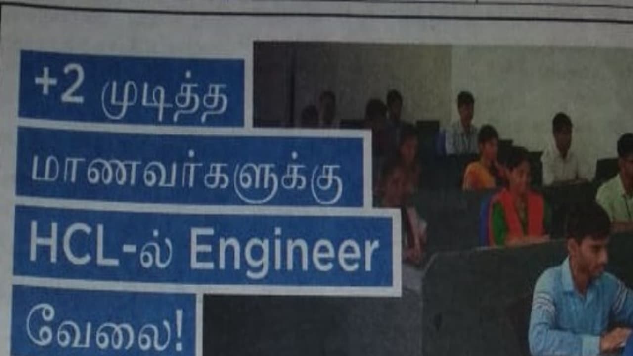 +2 முடித்த மாணவர்களுக்கு HCL-ல் Engineer வேலை!