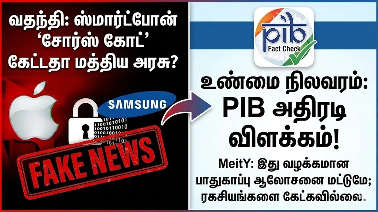 கடந்த சில நாட்களாகத் தொழில்நுட்ப உலகில் ஒரு செய்தி காட்டுத்தீயாகப் பரவியது. அதாவது, ஆப்பிள் (Apple), சாம்சங் (Samsung) போன்ற முன்னணி ஸ்மார்ட்போன் நிறுவனங்களிடம், அவற்றின் தயாரிப்புகளுக்கான 'சோர்ஸ் கோட்' (Source Code) விவரங்களை இந்திய அரசு கட்டாயமாகக் கேட்பதாக ராய்ட்டர்ஸ் (Reuters) நிறுவனம் செய்தி வெளியிட்டிருந்தது. இது சர்வதேச அளவில் பெரும் விவாதத்தைக் கிளப்பிய நிலையில், தற்போது மத்திய அரசின் பத்திரிகை தகவல் அலுவலகத்தின் உண்மை கண்டறியும் குழு (PIB Fact Check) இதற்குத் தகுந்த விளக்கமளித்து வதந்திக்கு முற்றுப்புள்ளி வைத்துள்ளது.