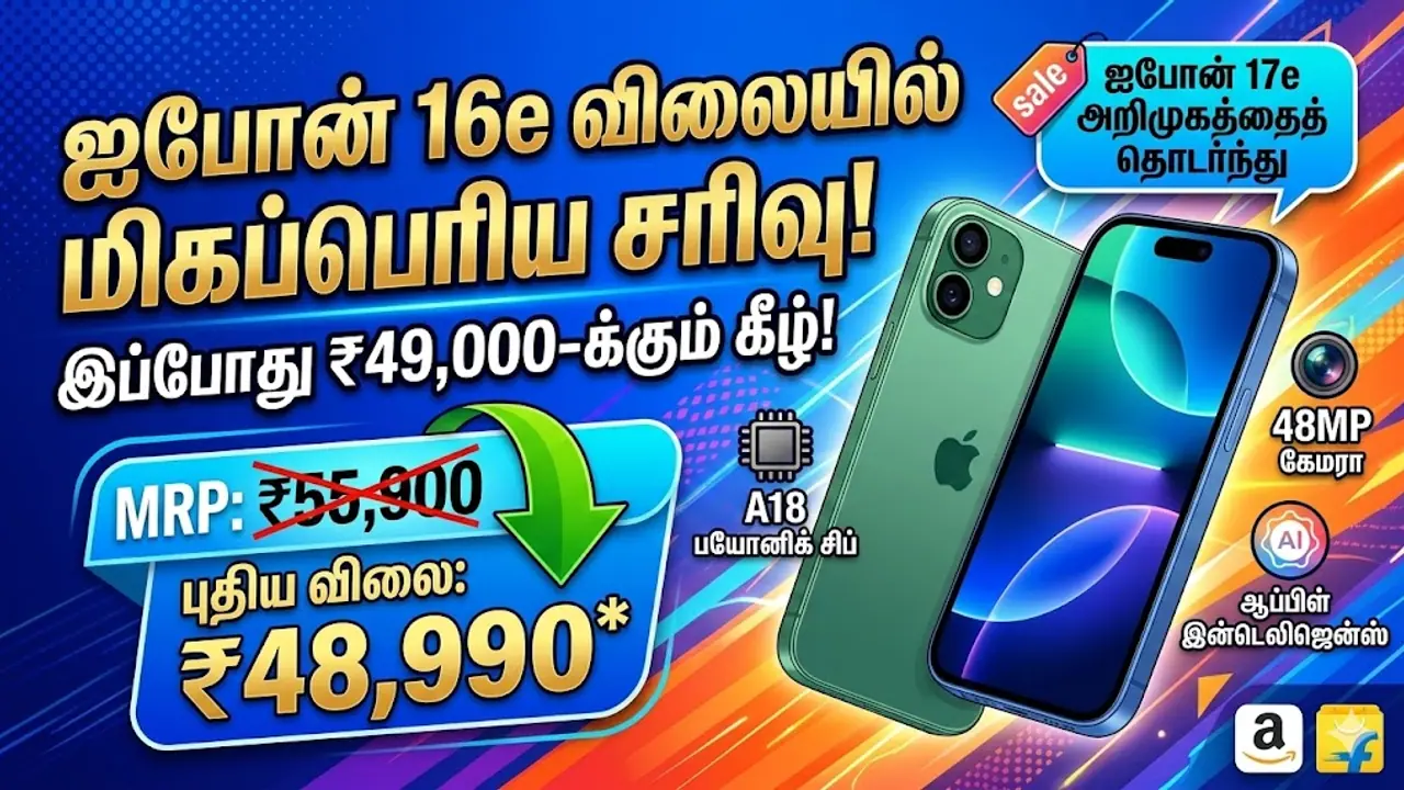 iPhone 16e ஐபோன் 16e விலையில் ரூ.7,000 குறைப்பு! இப்போது ரூ.49,000-க்குள் வாங்கலாம். சலுகைகள் மற்றும் முழு விவரங்கள் இங்கே.