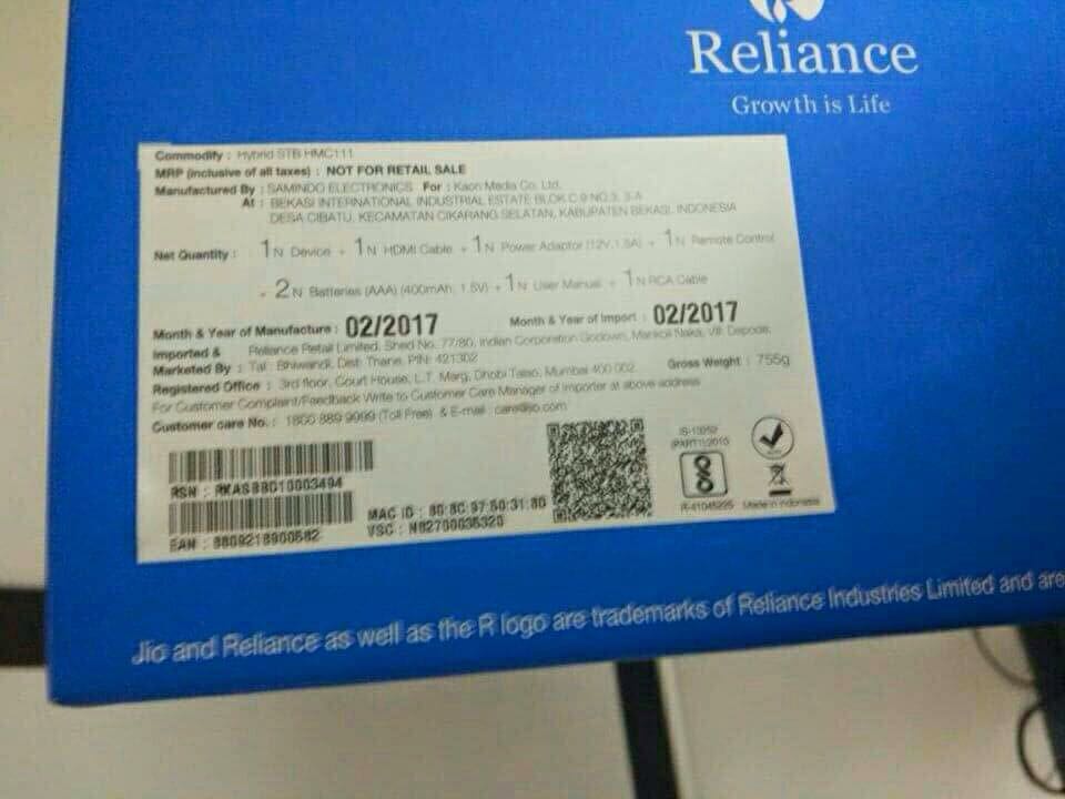 ஜியோ செட்-டாப் பாக்ஸ் இந்த மாதத்தில் அறிமுகம் செய்யப்படலாம் என எதிர்பார்க்கப்படுகின்றது. இதே சமயத்தில் ஜியோ பைபர் பிராட்பேண்ட் சேவையும் அறிமுகம் செய்யப்படலாம் என கூறப்படுகின்றது.