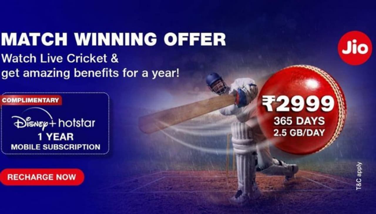 ஜியோ ரூ. 2999 சலுகையிலும் ஒரு வருடத்திற்கான டிஸ்னி பிளஸ் ஹாட்ஸ்டார் மொபைல் சந்தா இலவசமாக வழங்கப்படுகிறது.