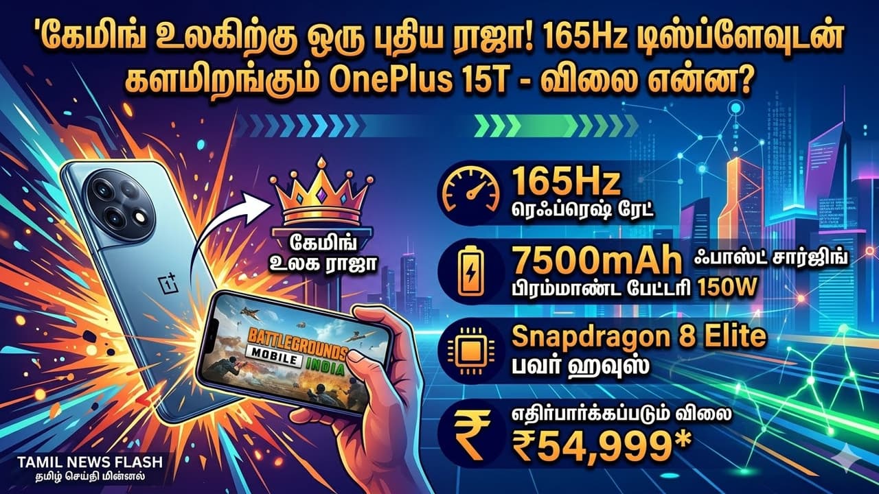 OnePlus ஒன்பிளஸ் 15T மார்ச் 24-ல் அறிமுகம்! 7500mAh பேட்டரி மற்றும் 165Hz டிஸ்ப்ளே என மிரட்டும் அம்சங்கள். முழு விவரம் இதோ. OnePlus 15T - விலை என்ன? புதிய ராஜா
