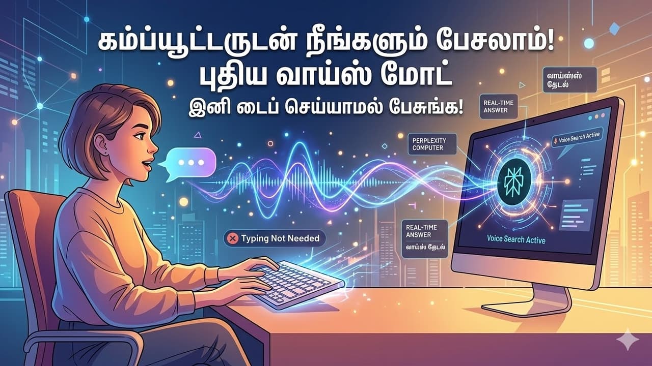 Perplexity AI பெர்ப்ளெக்சிட்டி AI கம்ப்யூட்டர்களுக்கான புதிய வாய்ஸ் மோட் வசதியை அறிமுகம் செய்துள்ளது. இனி டைப் செய்யாமல் குரல் மூலமே எளிதாக தேடலாம்.புதிய வசதி!