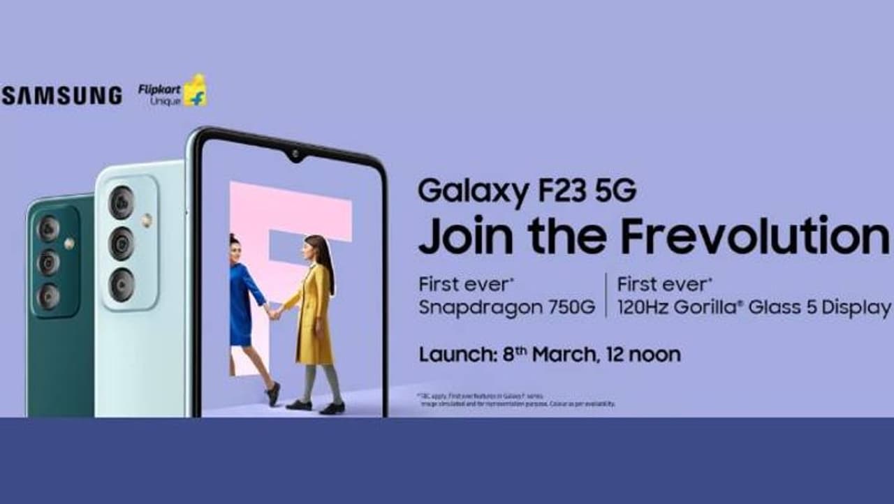 சாம்சங் கேலக்ஸி F23 5ஜி மாடல் வெளியீடு குறித்து ப்ளிப்கார்ட் மைக்ரோசைட் மற்றும் சாம்சங் இந்தியா வலைதளங்களில் சிறப்பு வலைப்பக்கங்கள் உருவாக்கப்பட்டுள்ளன. அதன்படி புதிய சாம்சங் ஸ்மார்ட்போனில் FHD, இன்ஃபினிட்டி வி ரக டிஸ்ப்ளே, 120Hz ரிப்ரெஷ் ரேட், குவால்காம் ஸ்னாப்டிராகன் 750ஜி பிராசஸர், கார்னிங் கொரில்லா கிளாஸ் 5 பாதுகாப்பு வழங்கப்படுகிறது. இதன் விற்பனை ப்ளிப்கார்ட் தளத்தில் பிரத்யேகமாக நடைபெறுகிறது.