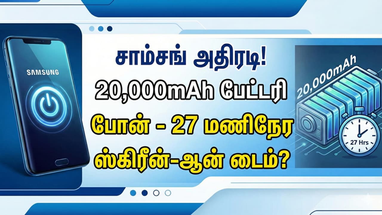 தென்கொரிய தொழில்நுட்ப ஜாம்பவானான சாம்சங், தனது புதிய படைப்புகள் மூலம் எப்போதும் வாடிக்கையாளர்களை ஆச்சரியப்படுத்துவதில் தவறுவதில்லை. பட்ஜெட் விலையில் கேலக்ஸி 'ஏ' சீரிஸ் முதல், பிரம்மாண்டமான கேலக்ஸி 'எஸ்' சீரிஸ் மற்றும் ஃபோல்டபிள் போன்கள் வரை சந்தையில் தனக்கென ஒரு இடத்தைப் பிடித்துள்ளது. இந்நிலையில், தொழில்நுட்ப உலகையே திரும்பிப் பார்க்க வைக்கும் வகையில், 20,000 mAh பேட்டரி கொண்ட ஒரு புதிய ஸ்மார்ட்போனை சாம்சங் உருவாக்கி வருவதாகத் தகவல்கள் கசிந்துள்ளன.
