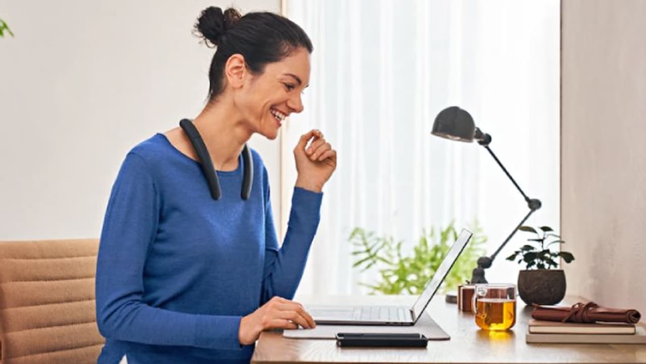 சோனி நிறுவனம் இந்தியாவில் இரண்டு புதிய வயர்லெஸ் நெக்பேண்ட் ஸ்பீக்கர் மாடல்களை அறிமுகம் செய்தது. இவை SRS-NB10 மற்றும் SRS-NS7 என அழைக்கப்படுகின்றன. சோனி SRS-NB10 மாடல் ஆன்லைன் கான்ஃபெரன்ஸ் மற்றும் மீட்டிங்களில் கலந்து கொள்வதற்கென பிரத்யேகமாக உருவாக்கப்பட்டுள்ளது. இது வீட்டில் இருந்து பணியாற்றுவோருக்காக வடிவமைக்கப்பட்டு உள்ளது. நெக்பேண்ட்-இல் ஃபுல் ரேன்ஜ் ஸ்பீக்கர் மேல்புறம் பார்த்த நிலையில் பொருத்தப்பட்டுள்ளது.