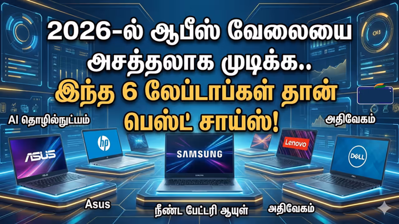 Laptops 2026-ஆம் ஆண்டிற்கான சிறந்த ஆபீஸ் லேப்டாப்கள். AI தொழில்நுட்பம், நீண்ட பேட்டரி மற்றும் பாதுகாப்புடன் வரும் சிறந்த மாடல்கள் பற்றி இங்கே அறியுங்கள்.
