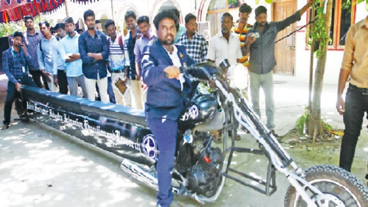 பழைய பைக்குகளின் பாகங்களை கொண்டும், ஒருசில பாகங்களை சீனாவில் இருந்து இறக்குமதி செய்தும் இந்த பைக் தயாரிக்கப்பட்டுள்ளது. அடுத்தக் கட்டமாக இந்த வாகனம் கின்னஸ் சாதனையில் இடம் பெற நடவடிக்கை எடுத்துவருகிறோம்.