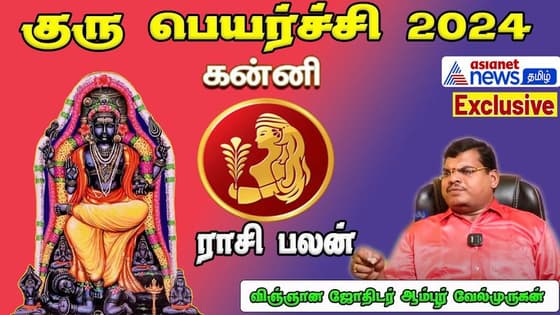 Virgo| Kanni Rasi for Guru peyarchi Palan | ஜோதிடத்தில் முக்கிய கிரக பெயர்ச்சிகளில் ஒன்றாக கருதப்படுவது குரு பெயர்ச்சி. இந்தாண்டு குரு பெயர்ச்சி 2024 மே 1-ம் தேதி நடக்க உள்ளது. குருவின் அமைப்பும், குருவின் பார்வையும் கன்னி ராசிக்கு எப்படிப்பட்ட பலனை அள்ளித் தரும் என்பதை கணித்துக் கூறுகிறார் விஞ்ஞான ஜோதிடர் ஆம்பூர் வேல்முருகன்!