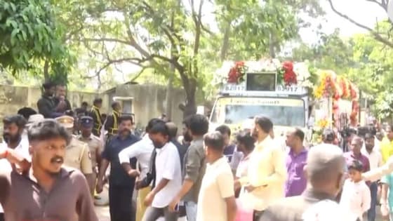 நகைச்சுவை நடிகர் மயில்சாமி நேற்று காலமானார். இதைத்தொடர்ந்து அவரது இறுதிஊர்வலத்திற்கான ஏற்பாடுகள் முழுவீச்சில் நடைபெற்றது. தற்போது அவரது உடல் இறுதி ஊர்வலமாக கொண்டு செல்லப்படுகிறது. இந்த இறுதி ஊர்வலத்தில் ஏராளமான பிரபலங்களும், பொதுமக்களும் கலந்துகொண்டு மயில்சாமிக்கு அஞ்சலி செலுத்தி வருகின்றனர். மயில்சாமி தீவிர சிவ பக்தர் என்பதால், அவரது இறுதி ஊர்வலம் சிவ வாத்தியங்கள் முழங்க நடைபெற்று வருகிறது. சென்னை வட பழனியில் உள்ள ஏ.வி.எம் மயானத்தில் மயில்சாமியின் உடல் தகனம் செய்யப்பட இருக்கிறது