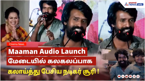 Maaman Audio Launch : இந்த படத்தில் இசையமைப்பாளரை அதிகமாக கொடுமை பண்ணிட்டோம் . எங்கள் அணியில் டிரைவரை தவிர எல்லாம் கால் செய்து விட்டோம் . படத்தின் இயக்குனரின் மகன் செய்த சேட்டைகளையும் படத்தில் படத்தில் நடந்த விஷயங்களையும் பகிர்ந்து மேடையில் கலகலப்பாக கலாய்த்து பேசிய நடிகர் சூரி .