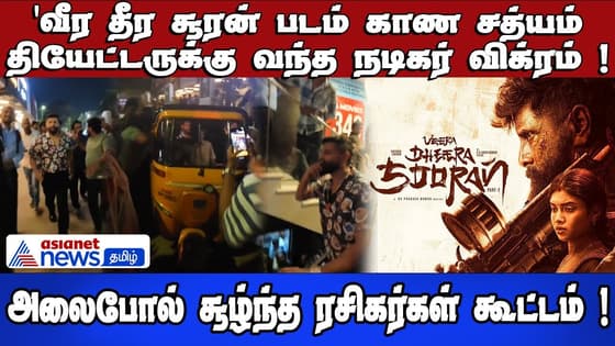 விக்ரம் நடிப்பில், இயக்குனர் எஸ்.யு அருண் குமார் இயக்கத்தில், HR பிக்சர்ஸ் நிறுவனம் சார்பில் உருவாகியுள்ள படம் தான் 'வீர தீர சூரன் 2'. விக்ரமுடன் இணைந்து, எஸ். ஜே. சூர்யா, சுராஜ் வெஞ்சரமூடு, துஷாரா விஜயன் உள்ளிட்ட பலர் இந்த படத்தில் நடித்துள்ளனர். மிகப்பெரிய எதிர்பார்ப்புக்கு மத்தியில், மாலை 6 மணிக்கு ரிலீஸ் ஆன வீர தீர சூரன் திரைப்படம் . இந்நிலையில் 'வீர தீர சூரன் படம் காண சத்யம் தியேட்டருக்கு வந்த நடிகர் விக்ரம் . அலைபோல் சூழ்ந்த ரசிகர்கள் கூட்டம் ...பிறகு ரசிகர்கள் கூட்டத்தால் ஆட்டோவில் ஏறி சென்றார் நடிகர் விக்ரம் !