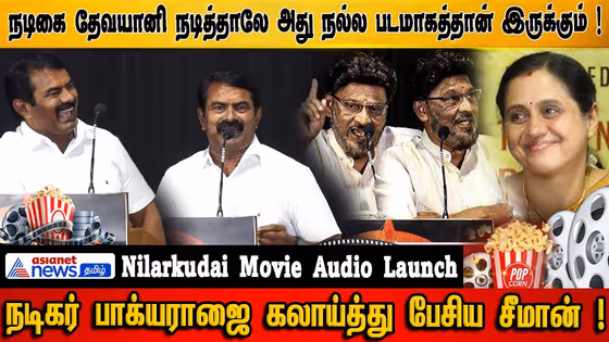 Nilarkudai Movie Audio Launch : நடிகை தேவயானி நடித்தாலே அது நல்ல படமாகத்தான் இருக்கும் . அவர்கள் தேர்ந்தெடுத்து நடிக்கும் விதம் நன்றாக இருக்கும் என்றும் நடிகர் பாக்யராஜை கலாய்த்து பேசி ....கடந்த காலங்களில் நடந்த நகைச்சுவை விஷயங்களையும் பகிர்ந்துக்கொண்ட நாம் தமிழர் கட்சி தலைவர் சீமான் பேசினார் .
