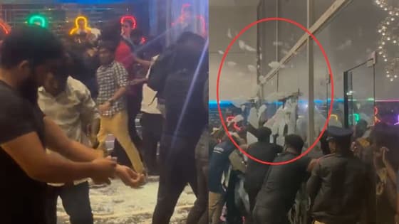 அதுமட்டுமின்றி அந்த திரையரங்கையும் ரசிகர்கள் சேதப்படுத்தி உள்ள வீடியோ ஒன்று வெளியாகி வைராகி வருகிறது. அந்த வீடியோவில் அதிகளவில் வெளியே கூடியிருந்த ரசிகர்கள் உள்ளே வராமல் தடுக்க போலீசாரும், அங்குள்ள பவுன்சர்களும் தியேட்டரின் நுழைவு வாயில் உள்ள கண்ணாடி கதவை தாங்கிப்பிடித்து நிற்கின்றனர்.