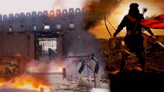 ஆந்திர மாநிலம், கோக்காபேட்டையில் அமைத்திருந்த பட தளத்தில் திடீரென தீ விபத்து ஏற்பட்டது இதையடுத்து