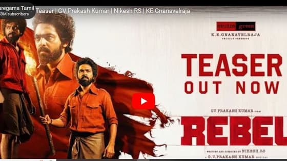 தேசிய விருதை வென்ற இசையமைப்பாளரும், நட்சத்திர நடிகருமான ஜீ. வி. பிரகாஷ் குமார் கதையின் நாயகனாக முதன்மையான கதாபாத்திரத்தில் நடித்திருக்கும் 'ரெபல்' திரைப்படத்தின் டீசர் வெளியிடப்பட்டிருக்கிறது. இதனை இந்திய திரையுலகின் முன்னணி நட்சத்திர நடிகரான சூர்யா அவருடைய இணையப் பக்கத்தில் வெளியிட்டு சிறப்பித்திருக்கிறார். வெளியான குறுகிய கால அவகாசத்திற்குள் 'ரெபல்' படத்தின் டீசர் அனைத்து தரப்பு பார்வையாளர்களையும் வெகுவாக கவர்ந்திருக்கிறது.