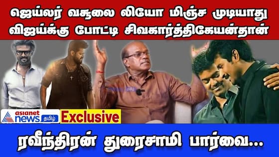 ஜெயிலர் வசூல் வேட்டை தொடரும் என்றும், எக்காலத்திலும் ஜெயலரின் வசூலை விஜயின் லியோ படத்தால் முந்த முடியாது என அரசியல் விமர்சகர் ரவீந்திரன் துரைசாமி தெரிவித்துள்ளார். உங்கள் ஏசியாநெட் நியூஸ் தமிழுக்கு அவர் அளித்துள்ள பேட்டியில். இந்த கோலிவுட்டில் விஜய்க்கு போட்டி அஜித் அல்ல என்றும், சிவகார்த்திகேயன் தான் என்றும் தெரிவித்துள்ளார். மேலும் பல சுவாரஸ்ய கேள்விகளுக்கும் அவர் பதிலளித்துள்ளார்.