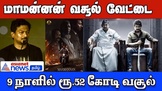 திரையில் வெற்றிகரமாக ஓடிக்கொண்டிருக்கும் மாமன்னன் படத்தின் வெற்றிவிழா நடைபெற்றது. இதில், நாயகன் உதயநிதி, ஹீரோயின் கீர்த்தி சுரேஷ், வடிவேலு, இயக்குனர் மாரி செல்வராஜ் உள்ளிட்ட படக்குழுவினர் பங்குபெற்றனர். விழாவில் பேசிய உதயநிதிஸ்டாலின், படத்தின் வசூல் குறித்து பேசினார். கடந்த 9 நாட்களில் ரூ.52கோடி வசூலாகியுள்ளதாக தெரிவித்தார்.