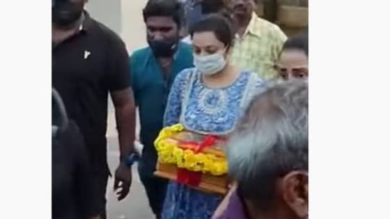 கணவரின் இறுதிச்சடங்கு முடிவடைந்ததையடுத்து, அவரின் அஸ்தியுடன் கண்கலங்கியபடி மீனா வீடு திரும்பினார்.